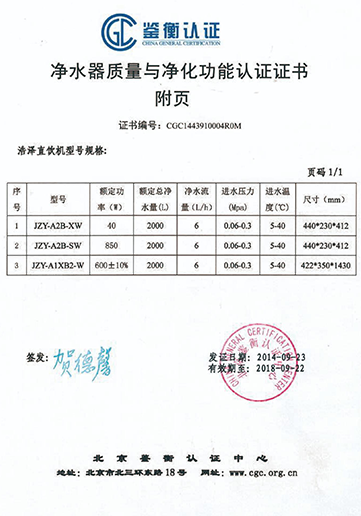 • 凈水器產品認證