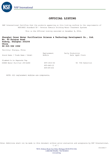 • NSF證書
